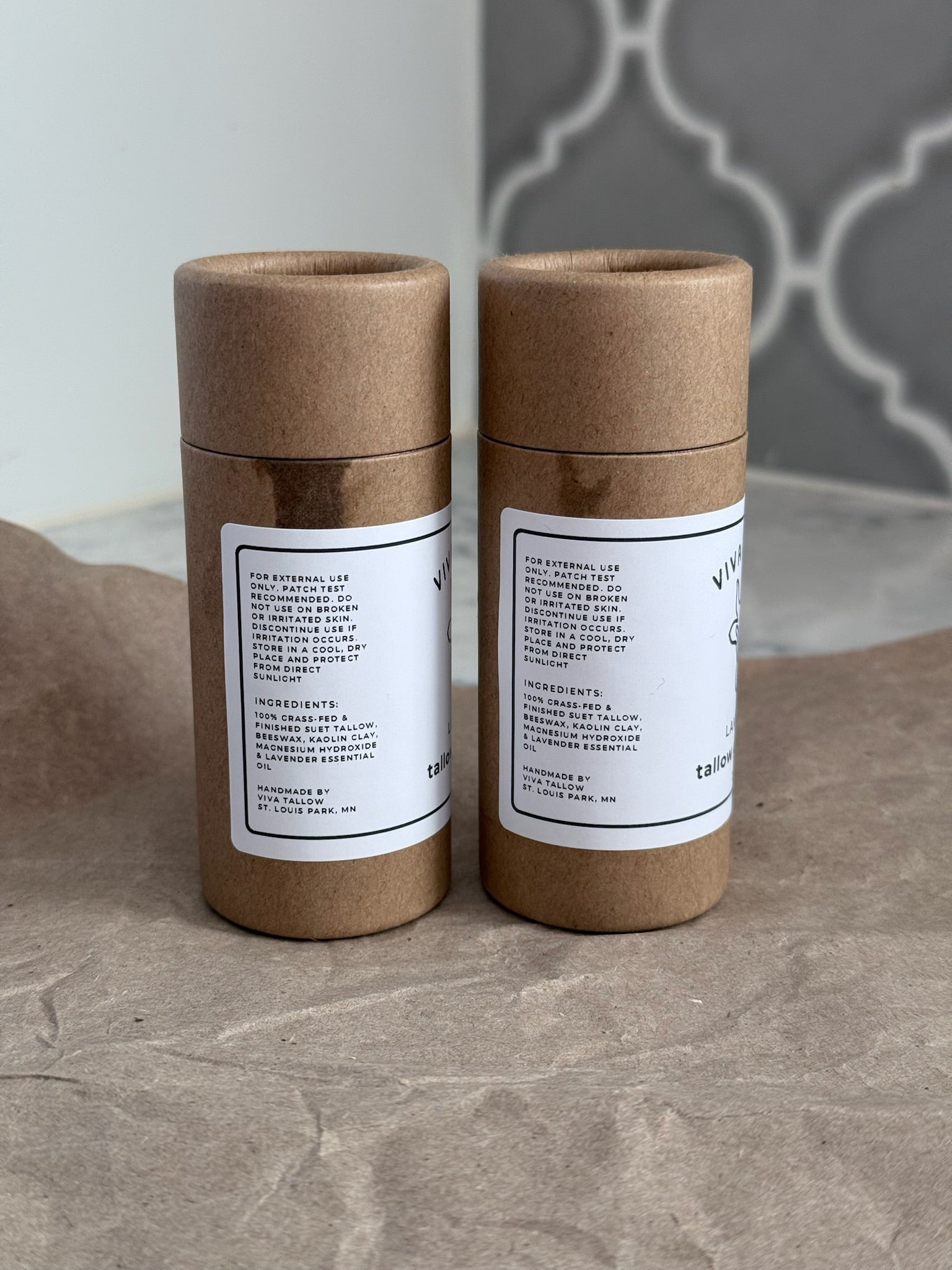 Please note: Due to the artisanal nature of the hand pouring process, some push-up paper tubes may show slight discoloration if a small amount of the product spills over during pouring (see last photo). This does not affect the quality or performance of the deodorant and is a natural result of our hands-on production method.